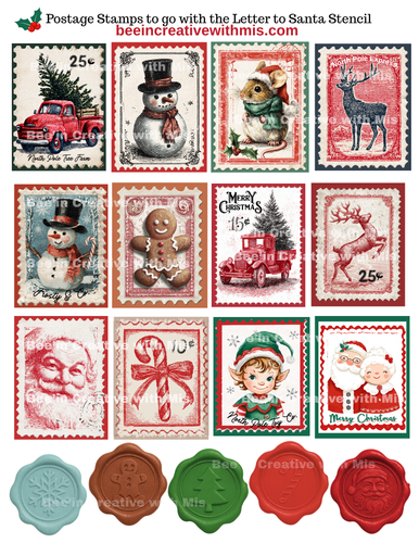 Christmas Postage Stamps and Wax Seals To go with Stencil