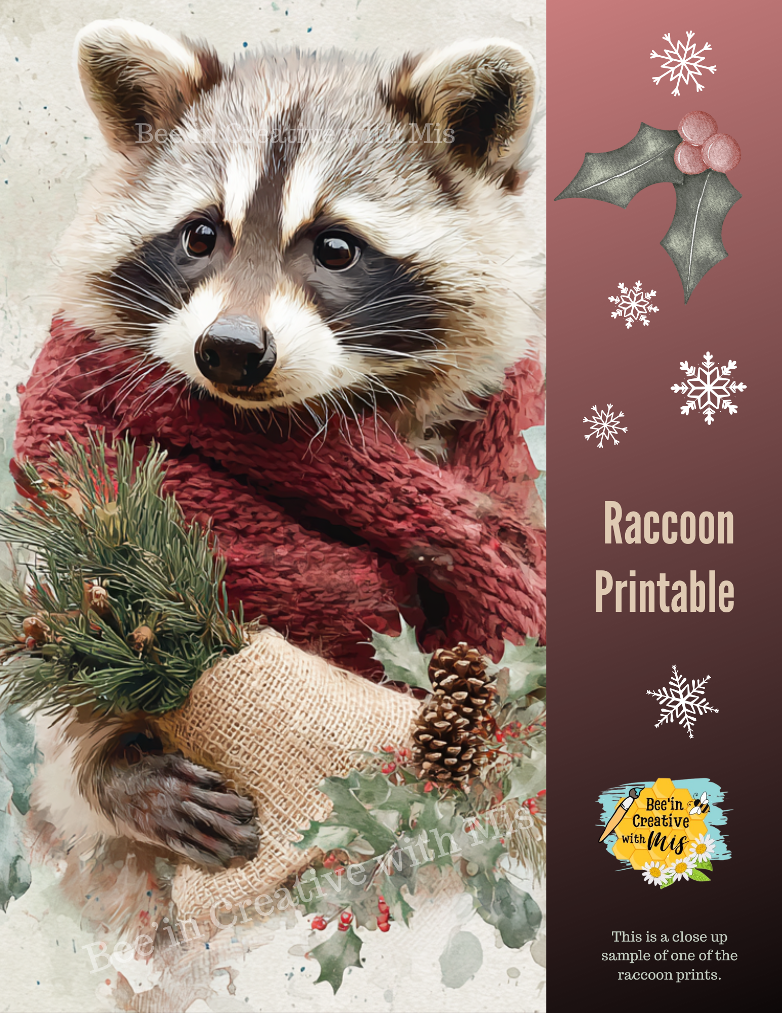This is a pdf printable of Christmas raccoons for your holiday decor. Additionally, there are two tags included that you could cut out and punch holes in to use as tags!