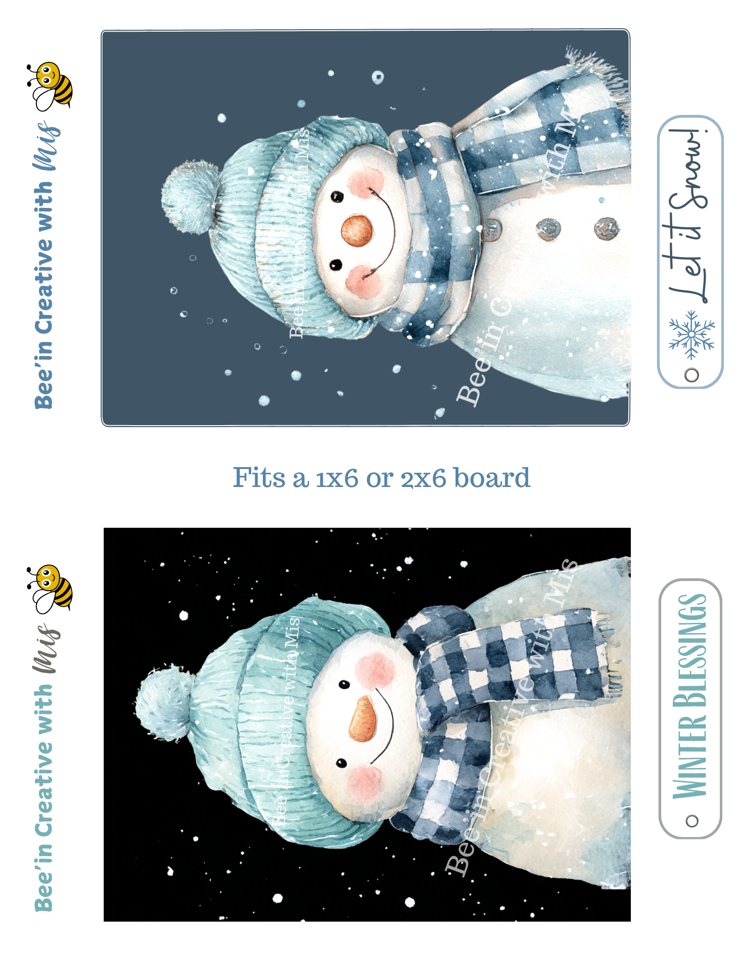 These prints fit a 1x6 or 2x6 board nicely. These cold weather snowmen are perfect for adding a fun touch to your winter decor! YYou can add some glitter or fake snow to really make your project stand out.
