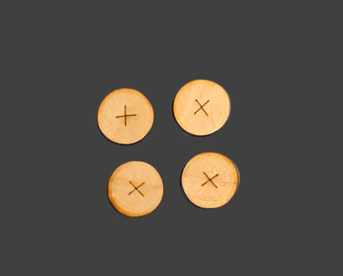 Set of four wood buttons with an X etched in the middle to resemble thread stitched. 3/4" in size and 1/8" thickness cut from birch wood.